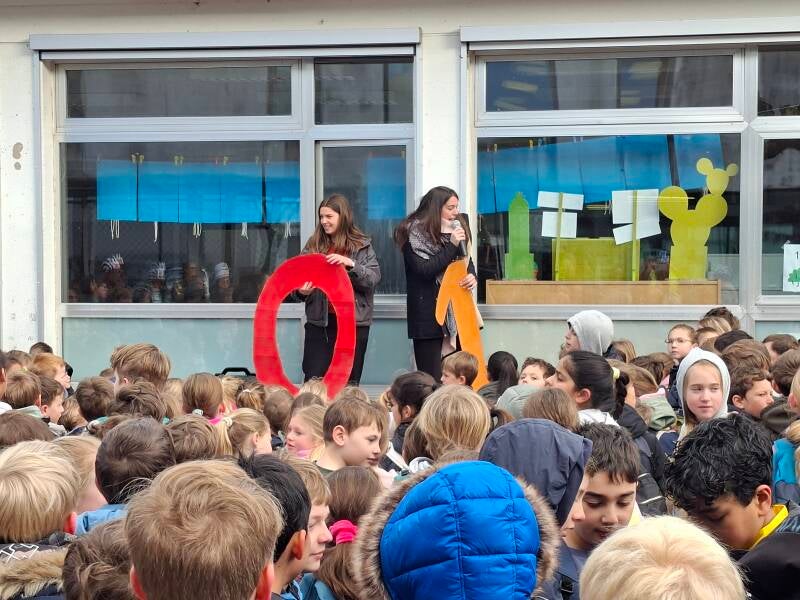Donderdag hadden we het jaarthema dag. De groepen waren gemixt over de hele school. Er waren verschillende uitdagingen die we moesten voltooien en dan op het einde van de dag kregen we een feestje voor de verjaardag van de vier. Het was echt een super leuke dag met satés die we zelf moesten maken.
